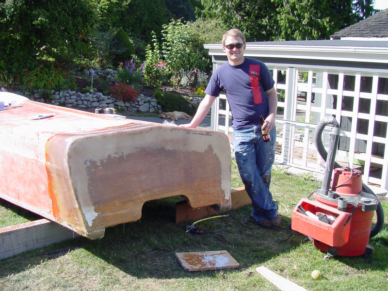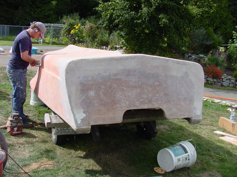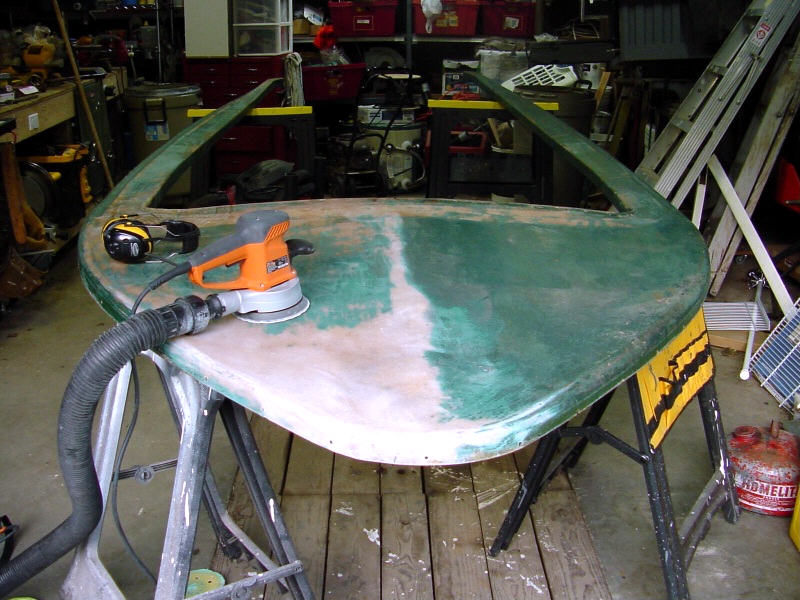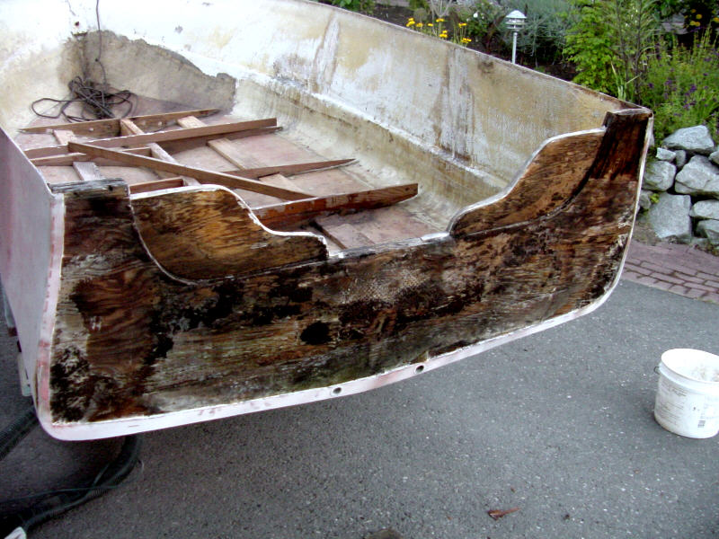 Removed the fiberglass skin with a dremel tool to get to the rotten transom. It was good enough to use for a pattern.
