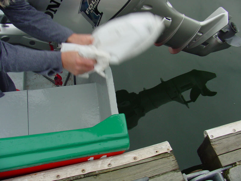 Nicci couldn't break the bottle over the bow. So we did the sure thing and smashed it on the transom...